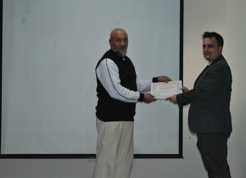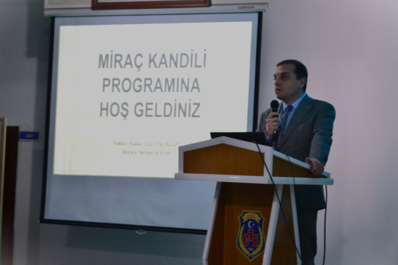 Hakkari Kapalı Ceza İnfaz Kurumunda gerçekleşen Miraç Kandili programında; Hakkari Cumhuriyet Başsavcısı Sayın Burak HAZİNEDAROĞLU tarafından Miraç Kandilinin önemi belirtilen yapılan konuşmanın ardından, Kurumumuzda bulunan Hükümlü/tutuklular tarafından Kuran-ı Kerim tilaveti, İlahi dinletisi yapılması, Hakkari İl Müftüsü Sayın Hüseyin OKUŞ’un Miraç Kandilinin önemini belirten konuşmanın yapılması, Hakkari Cumhuriyet Başsavcısı Sayın Burak HAZİNERDOĞLU tarafından Hakkari İl Müftüsü Sayın Hüseyin OKUŞ’a kurumda bulunan hükümlü/tutukluların el işi yapmış olduğu hediye takdim edilmesi ve Hakkari Kapalı Ceza İnfaz Kurumunda Kuran-ı Kerim Kursunu tamamlayan H/T’lere belge verilmesine müteakiben program tamamlanmıştır.