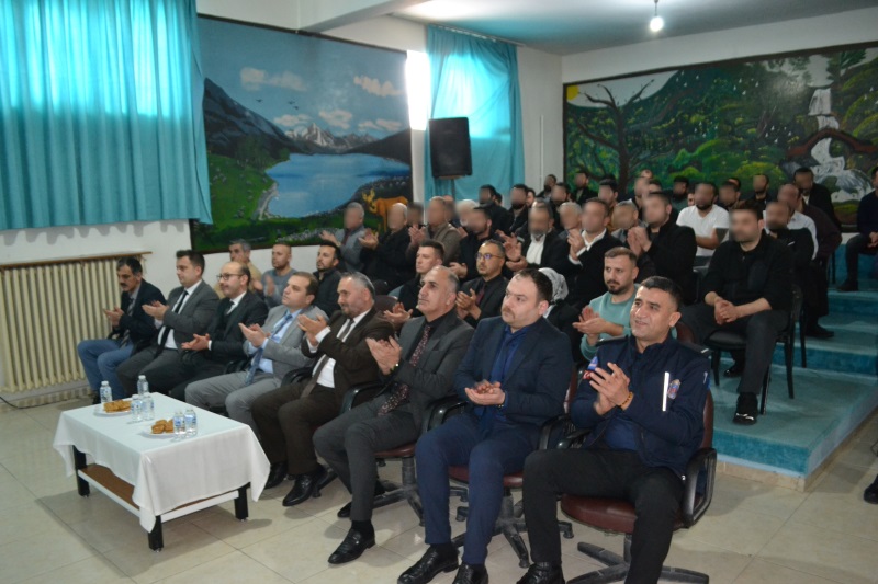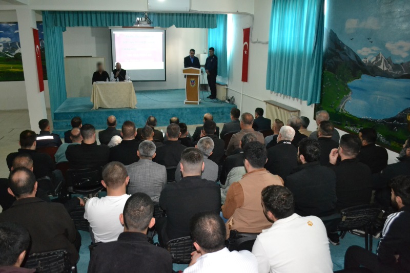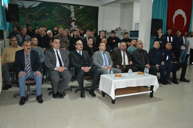 Hakkari Kapalı Ceza İnfaz Kurumunda 15.01.2025 tarihinde Bakanlığımız ile Diyanet İşleri Başkanlığı arasında imzalanan İş Birliği Protokolü kapsamında Miraç Kandili ceza ve infaz kurumumuzda bulunan hükümlü/tutukluların topluma yeniden kazandırılabilmeleri, dini konular ve manevi değerler hakkında bilgilenmeleri amacıyla Hakkari Cumhuriyet Başsavcısı Sayın Burak HAZİNEDAROĞLU, Ceza İnfaz Kurumundan Sorumlu Cumhuriyet Savcısı Nurullah ASAN ve Hakkari İl Müftüsü Hüseyin OKUŞ’un teşrifleriyle Miraç Kandili Programı düzenlendi.