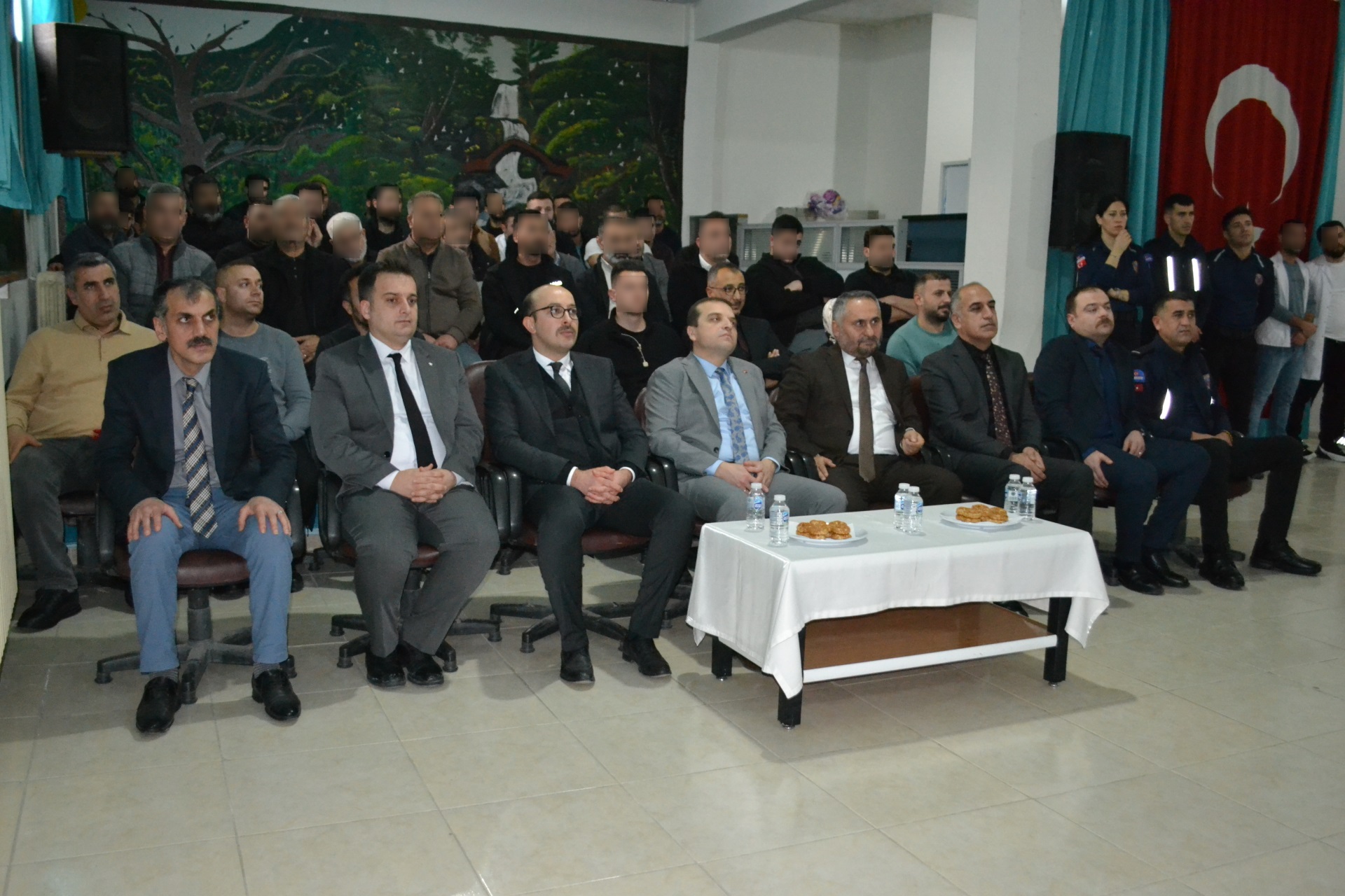 Hakkari Kapalı Ceza İnfaz Kurumunda 15.01.2025 tarihinde Bakanlığımız ile Diyanet İşleri Başkanlığı arasında imzalanan İş Birliği Protokolü kapsamında Miraç Kandili ceza ve infaz kurumumuzda bulunan hükümlü/tutukluların topluma yeniden kazandırılabilmeleri, dini konular ve manevi değerler hakkında bilgilenmeleri amacıyla Hakkari Cumhuriyet Başsavcısı Sayın Burak HAZİNEDAROĞLU, Ceza İnfaz Kurumundan Sorumlu Cumhuriyet Savcısı Nurullah ASAN ve Hakkari İl Müftüsü Hüseyin OKUŞ’un teşrifleriyle Miraç Kandili Programı düzenlendi.